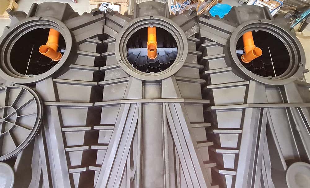 Der Kunde wünschte sich jedoch keine Plug & Play Containerkläranlage, sondern lediglich die Bestandteile, um die Anlage selbst vor Ort aufzubauen. Daher entwickelten die ClearFox®-Ingenieure ein Konzept, wie sie die Wünsche des Kunden bestmöglich umsetzen können. Für die Festbetttechnologie bietet das ClearFox®-Team rotationsgeformte Behälter an, in welchen die Blöcke verbaut werden. Diese sind besonders stabil, da sie keine Sollbruchstelle besitzen.