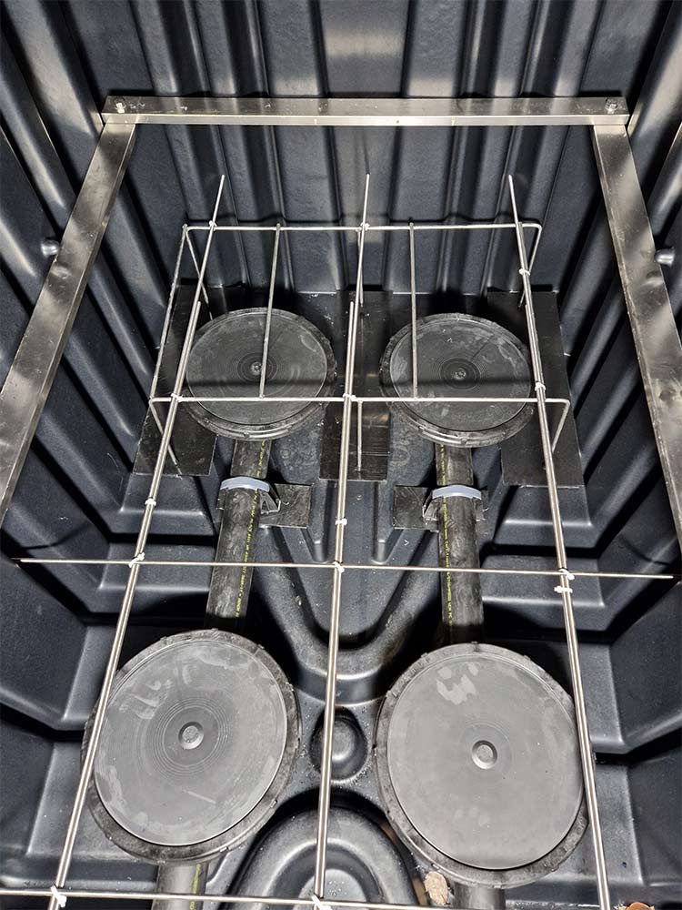 Nach detaillierter Auswertung der Laboranalysen, Volumenangaben und hydraulischen Belastung wurde durch die PPU Umwelttechnik GmbH eine kompakte, nachgeschaltete Lösung entwickelt: Eine zweistufige biologische Behandlung mit Festbettreaktoren (FBR) sowie eine anschließende Nachklärung zur Abtrennung des Belebtschlamms.